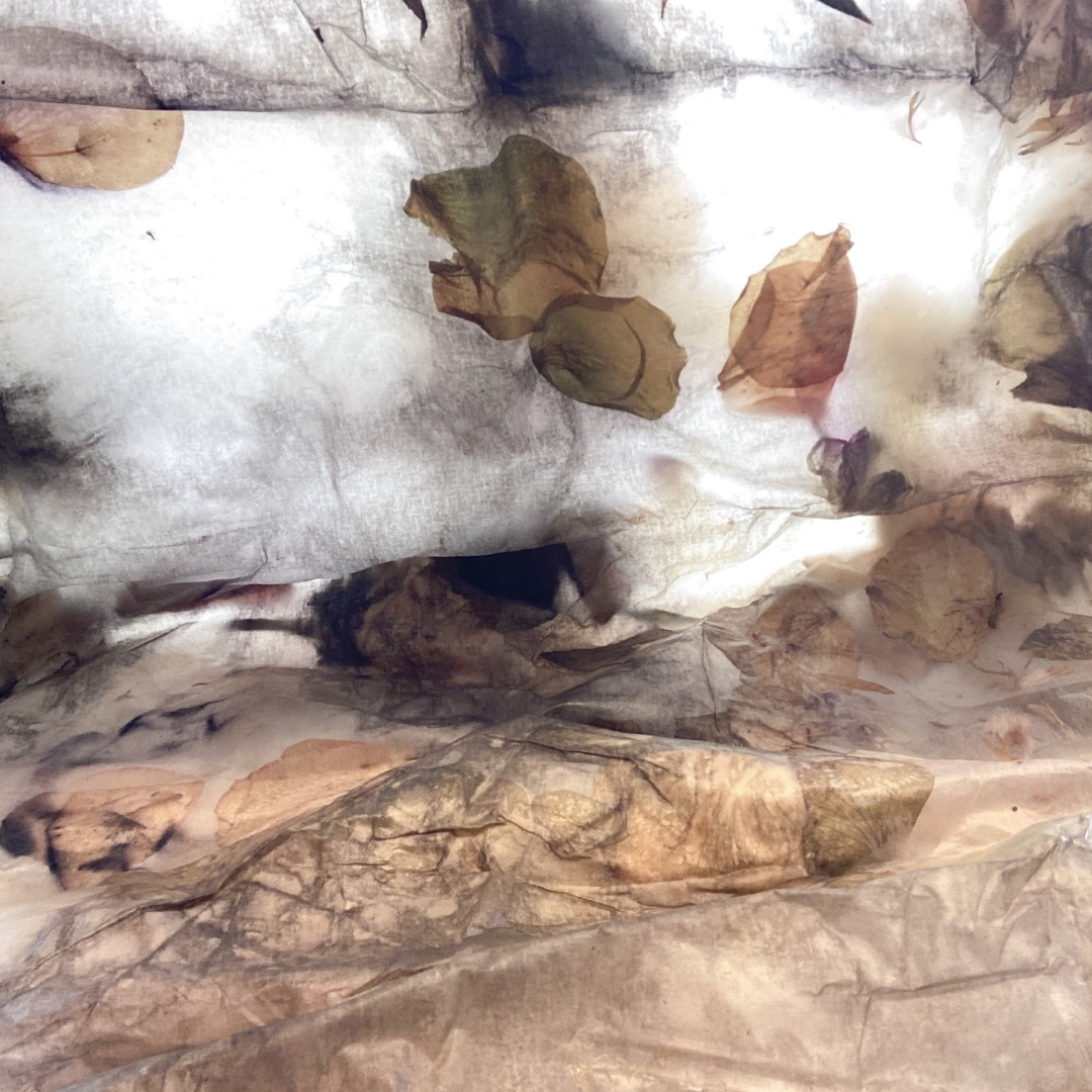 I denne utstillingen utforsker Teresa hvordan blomster, tekstiler og stein endrer seg når de pakkes inn, råtner og blir eksponert igjen. Ved å arbeide med kasserte blomster setter hun selve prosessen i sentrum: hvordan materialene brytes ned, reagerer og etterlater spor. Disse sporene blir konkrete avtrykk av en livssyklus og viser hvordan forandring ligger lagret i materialene selv.