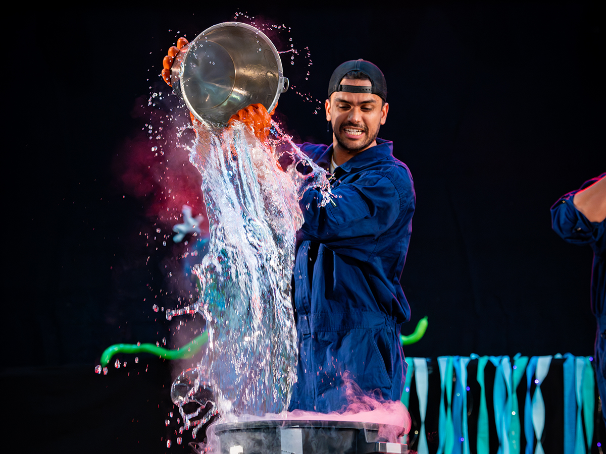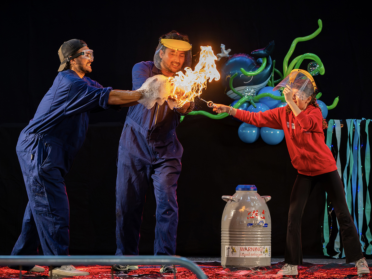 Dennis Siva og Stian Sandø som er kjent fra Newton på NRK, har i en årrekke underholdt barn og unge med sitt populære sceneshow! Her tar de med seg det beste og morsomste fra TV! Showet er en herlig cocktail av flammer, eksplosjoner, latter og læring!